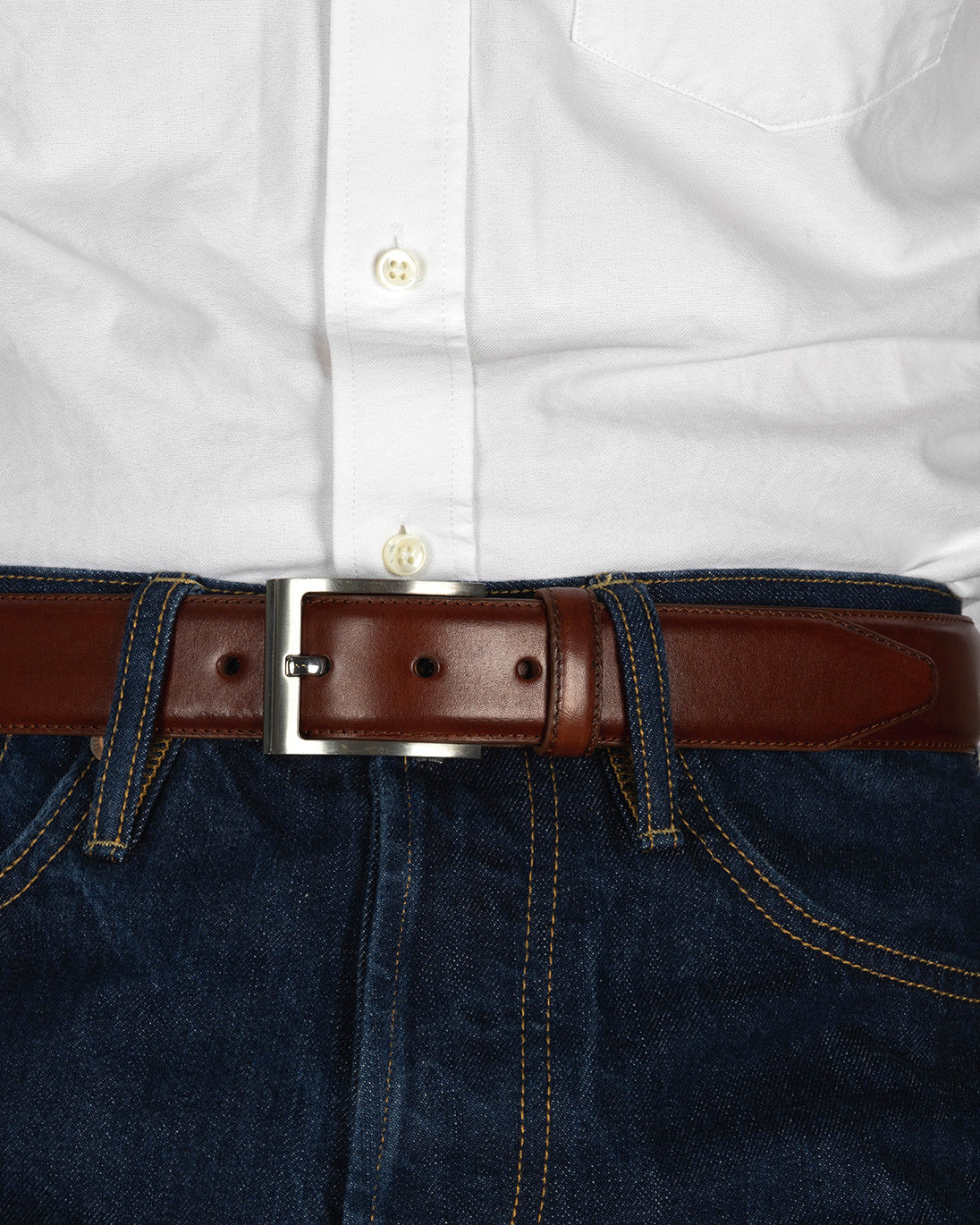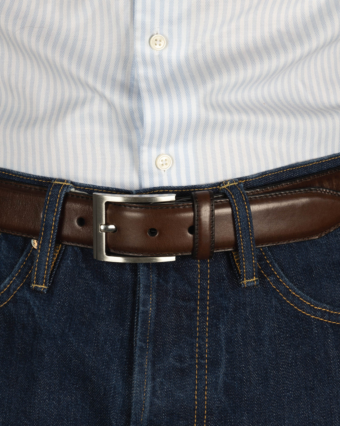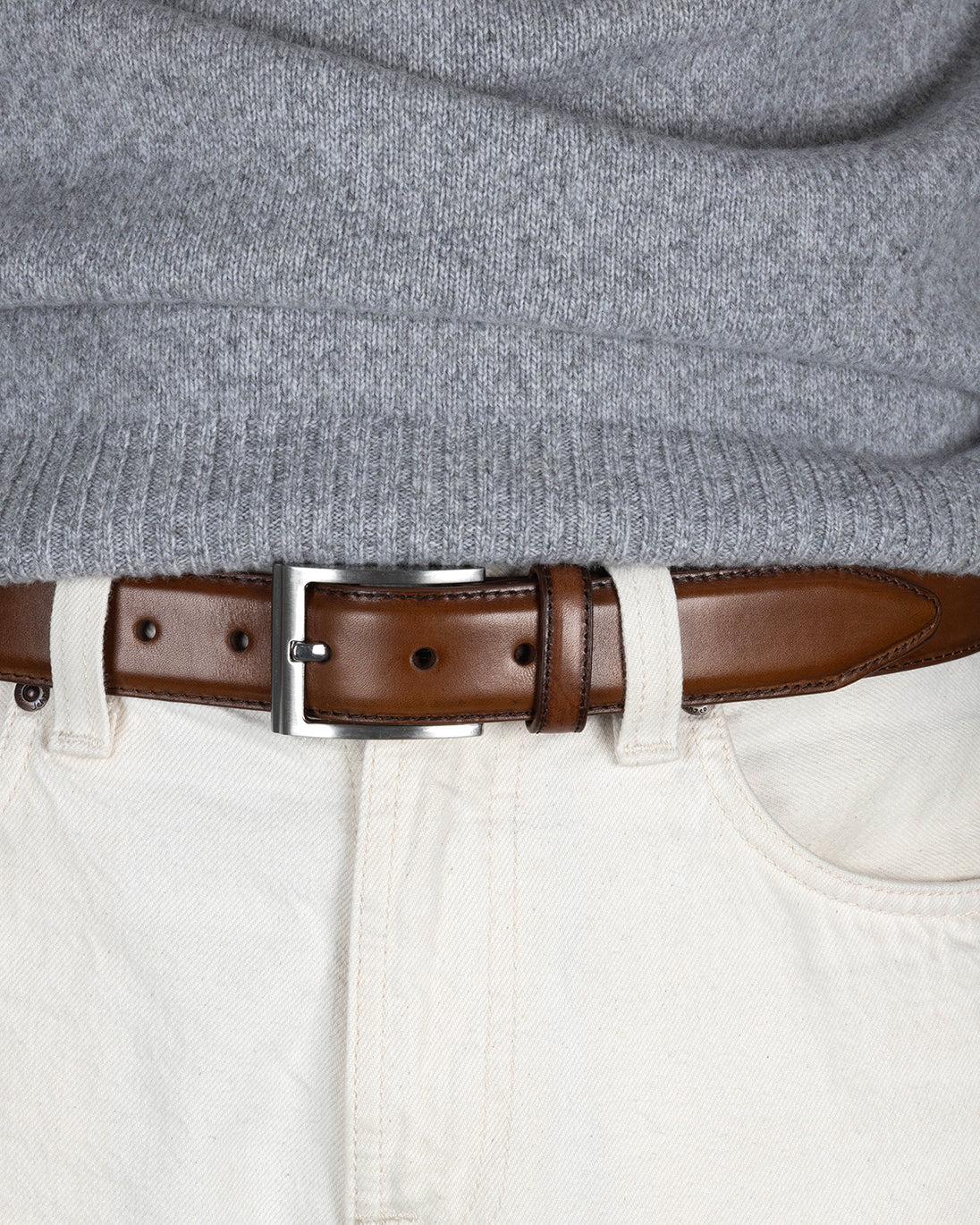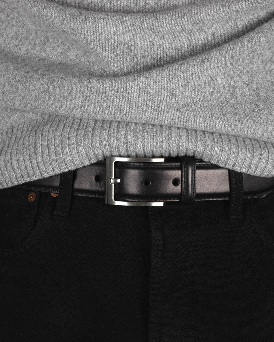Made from premium calf leather, this belt combines timeless craftsmanship with everyday versatility. With a traditional square buckle and its 3.5 cm width the Philip belt offers a polished, refined look that complements both casual and formal attire. Available in six options of leather.