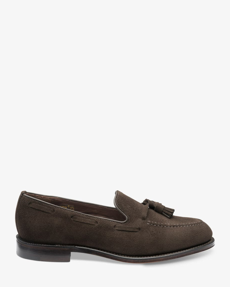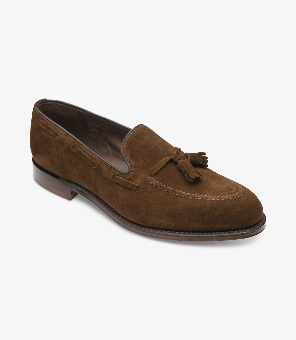 1880 Classic premium tassel loafer made in the classic summer shade of Polo Suede. A perfect companion for more casual attire. Made on our new loafer last shape called College/F. A soft almond toe shape last.