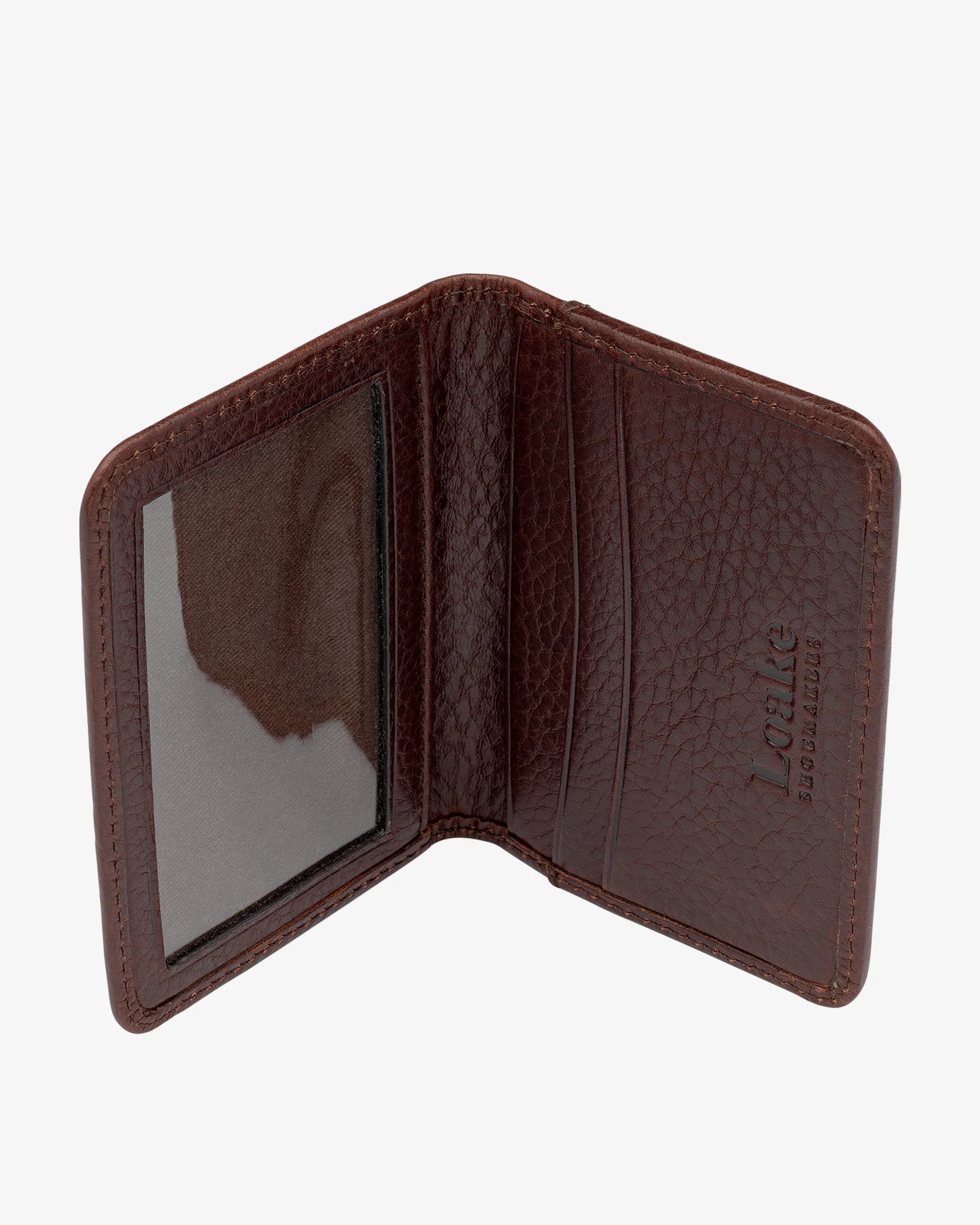 Our ‘Fenchurch’ premium calf leather card holder features an embossed Loake logo on the inside, with multiple card slots, as well as clear plastic ID section. These leather card holders are designed and engineered in Kettering and made in our high-grade factory in India.