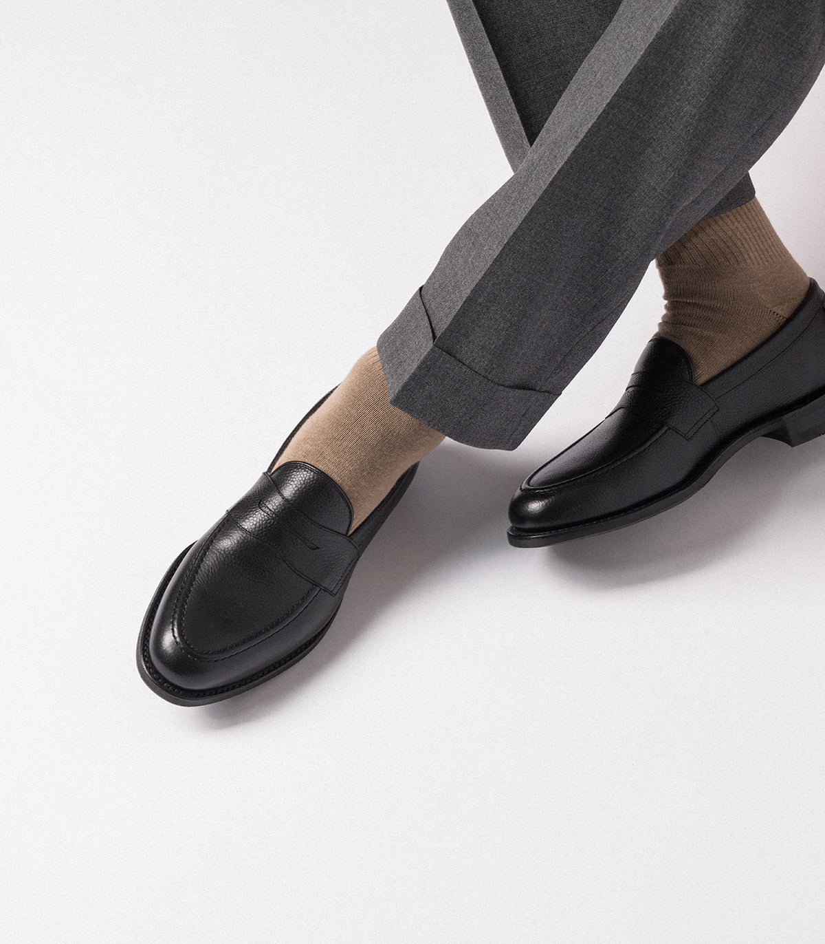 Penny loafer style Imperial, a true classic that every gentleman should have in his shoedrobe. Made on our loafer last shape called College/F. A soft almond toe shape last which suits both dressed and casual attire. This version features our slim Shadow Rubber Sole.
